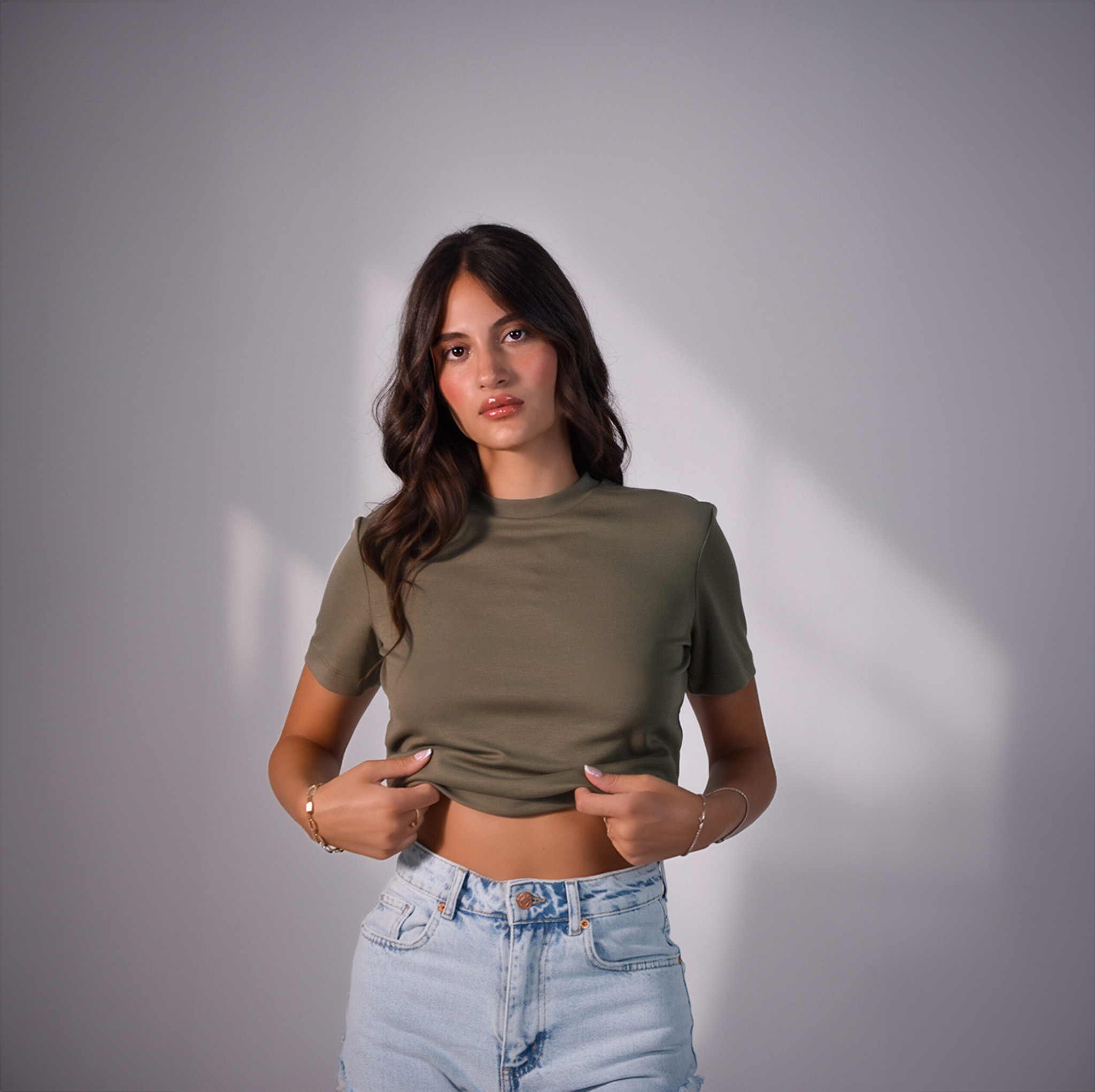 Fitted crop top with short sleeves and a clean, minimalist silhouette.