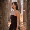 A clean silhouette in rich maroon—this strapless maxi dress is all ease and elegance.